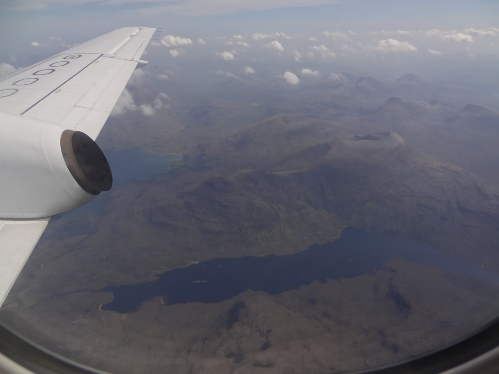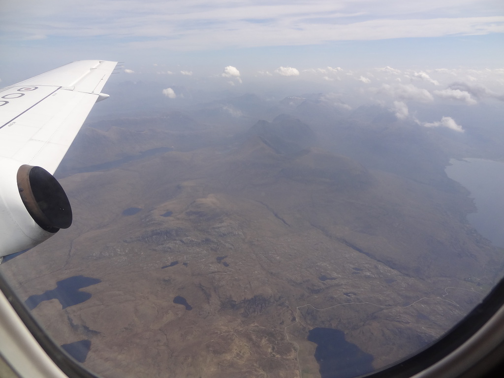 It’s not often you get to fly over the summit of your last Munro but that’s exactly what I did on Thursday last week. I had to fly from Glasgow to Stornoway on Flybe for a meeting and am I glad I took my camera! I was glued to the window the whole way. Our route took us across Inchmurrin just west of Conic Hill then over the top of Ben Lomond.