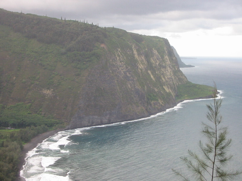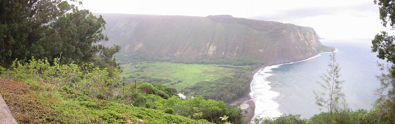 After dinner we had driven out to Waipio, past a lava cave at the side ot the road. Now Waipio is an impressive place and easy to get to by bike as the road is rolling and nothing too steep, though I couldn’t be bothered after the run from Hilo! The road stops at the overlook though and you’re strongly advised not to go down into the valley in anything other than a 4x4. I looked the road down and wondered why. It was smooth tarmac, steep and twisting but perhaps around the gradient of the Bealach na Ba coming Applecross but apparently the automatic hire cars can’t handle it and there are some huge drops if you slide off the road. What a place though. It used to be a very fertile, veritable utopia of the big island, supporting a large population in pardisic idyll, until a tsunami cam and washed it all away. Now you can stay in the valley in a tree house for an extortionate amount of money. Welcome touristville!