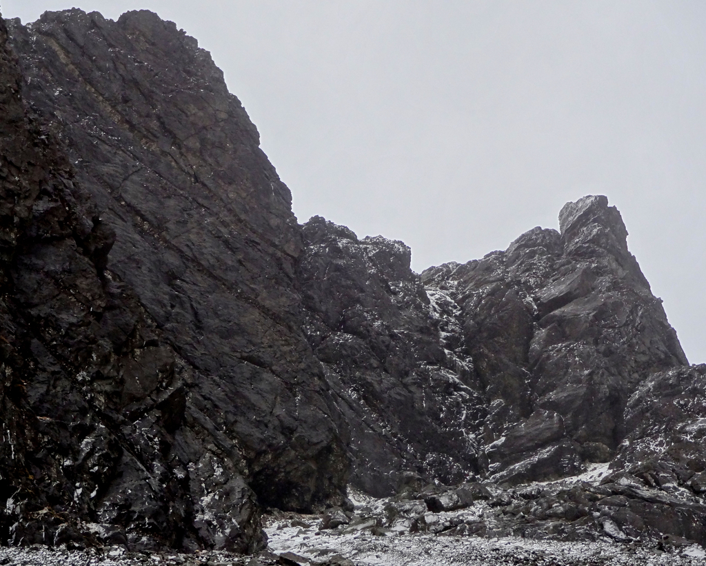 I was sorely tempted to head right up onto the ridge and who knows, maybe even attempt the Diff Chimney onto Blaven itself but the weather was closing in again. Wild blasts were screaming down from the cliffs and knocking me around. It was too wild and too wet to climb.