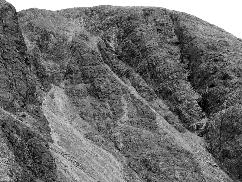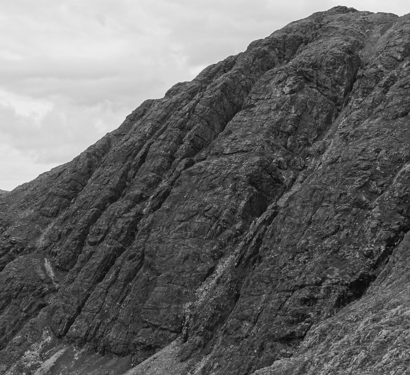 It’s been a quiet old time lately, hillwise but today I went out for a walk. Nothing much in mind, just a wander, to see where I ended up. On days like these I like to head up into the coire on Blaven and explore. There’s anticipation in the air as a storm is forecast to trundle in around three o’clock and ghostly wraiths wrap the summit now and then and my imagination takes me into another world.