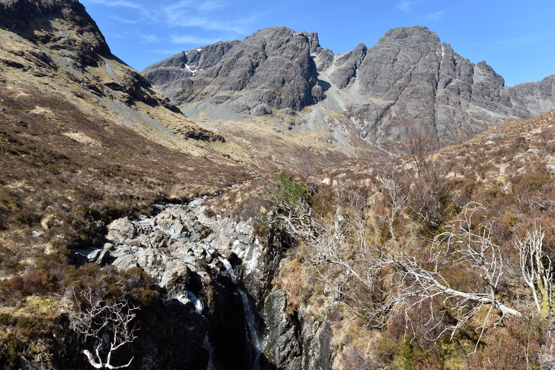 and I stopped at the second burn crossing to watch the ravens harass a golden eagle. They flew out of the corrie with one following literally a foot from the eagle, turning and sumersalting in front of it, escorting it all the way over to Beinn na Caillich.
