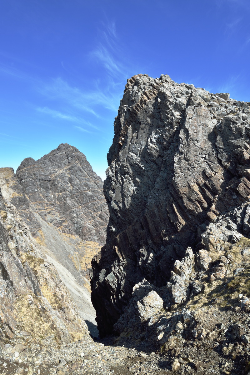 A hot ascent followed, heading up the tourist path, listening to stonechats and what sounded suspiciously like a ring ouzel. I normally go up the south summit first for the scramble between the peaks but I thought it would still be choked with snow and a nice couple who’d camped on the summit confirmed this, as we met on their descent. I managed a good detour off into scrambling territory on the steeper rocks and the groove though. Turned out quite a few bods were on the south summit, not having much success getting across to the main summit so I had a very peaceful time watching the mountains and the clouds.