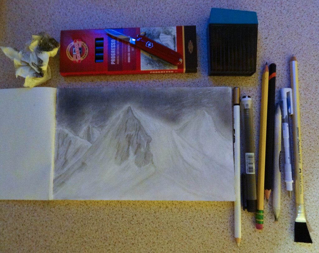 Over the next three days I followed a fixed routine. Up at six to jackdaws being jackdaws in the tree a foot from my window. To a treecreeper creeping up and down the branches, chaffinches, blackbirds, swallows, housemartins all being what they should be. Ducks bringing up their young in the pond between the temple and the Esk, porridge at seven, “karmic yoga” at eight fifteen (on the second day). We used to call this “doing duties” in youth hostel days. Yoga from ten to twelve thirty, lunch, the main meal of the day, yoga from three to five thirty, soup at six then walks along the river or along the forestry roads up into the hills. A nice cup of coffee in Johnstone House and sit in the library as the sun set, listening to the quiet conversation or the silence of the books. In the late evening it was nice to wander the grounds, hearing the prayer flags flap in the breeze, put my finger in the Stupa pond and let a stranded bee climb aboard, vibrate then preen its translucent wings and let it sit there for a while before putting it in the grass. Back to the pond to rescue a ladybird and a moth. You can’t rescue everything but you can make a difference. We are part of nature after all, not impassive bystanders. We have a part to play, as I wrote of my natural rescues on St. Cuthbert’s Way. At night I could retire to my tiny room and be creative.