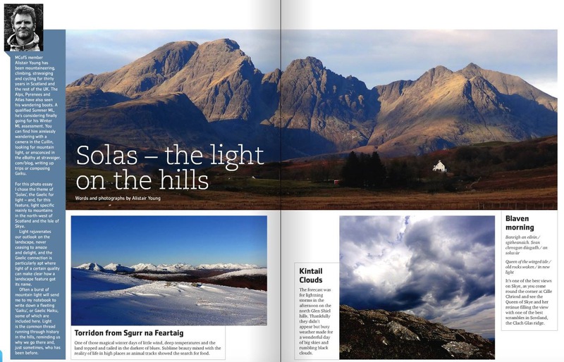 It just sort of happened. I emailed the editor of The Scottish Mountaineer, the magazine of the MCofS, asking if he’d like an article on wild sleeps and pointed him to my flickr stuff as examples of pictures. The reply was along the lines of ‘yes but how about a photo feature first?’. And so, in the February 2015 edition, it duly appeared.